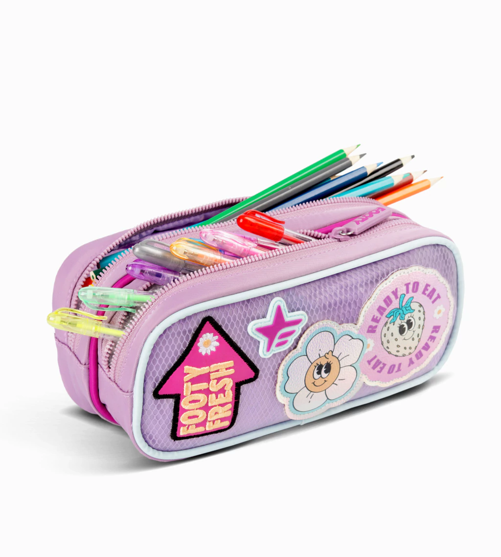 Cartuchera con 2 cierres superiores con tiracierres de rubber