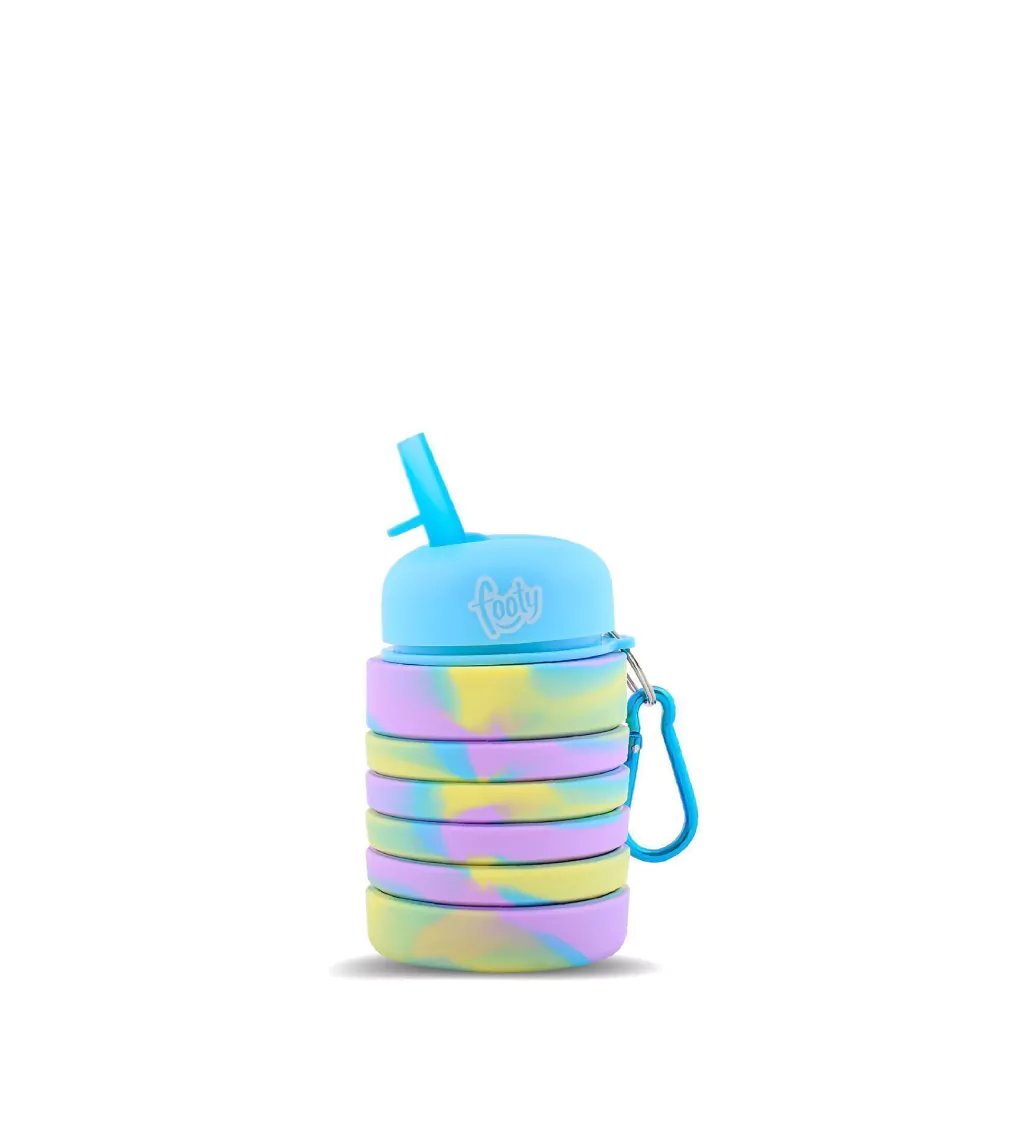 BOTELLITA DE SILICONA 450ML flexible/plegable con forma de acordeón. Con pico vertedor y llavero para colgar de la mochila