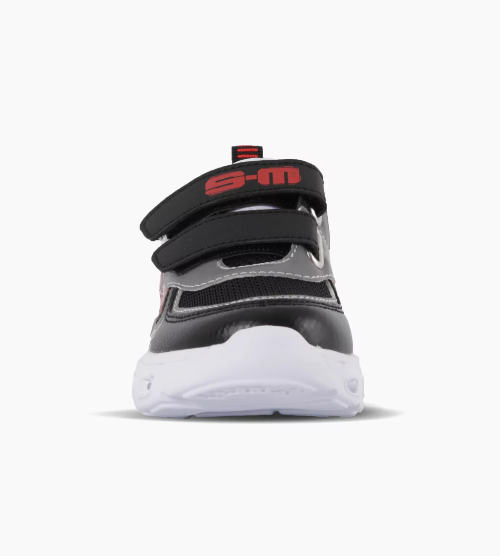 Zapatillas ideal para uso diario con luz led al pisar. Capellada confeccionada en materiales sinteticos combinada con recortes textil y aplique de PVC. Sistema de ajuste con abrojo. Suela de TPR. Puntera y talón reforzados.