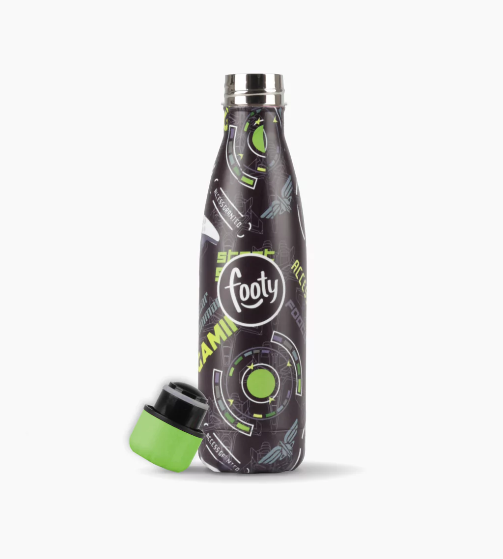 BOTELLITA TERMICA ACERO INOXIDABLE 500ML. Material irrompible y liviano. Doble pared que evita la perdida de temperatura y tapa a rosca. Botella estampada con diseño Footy. Mantiene 24hs el frio y 12hs el calor!