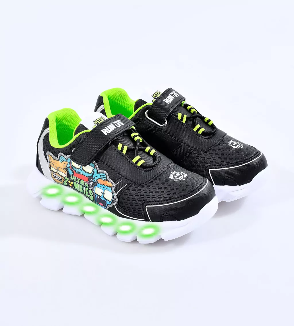 Zapatillas de diseño deportivo con luz led al pisar. Capellada confeccionada en materiales sintéticos con aplique de PVC. Sistema de ajuste con abrojo y elástico simil cordón. Suela liviana con luces de led al pisar.